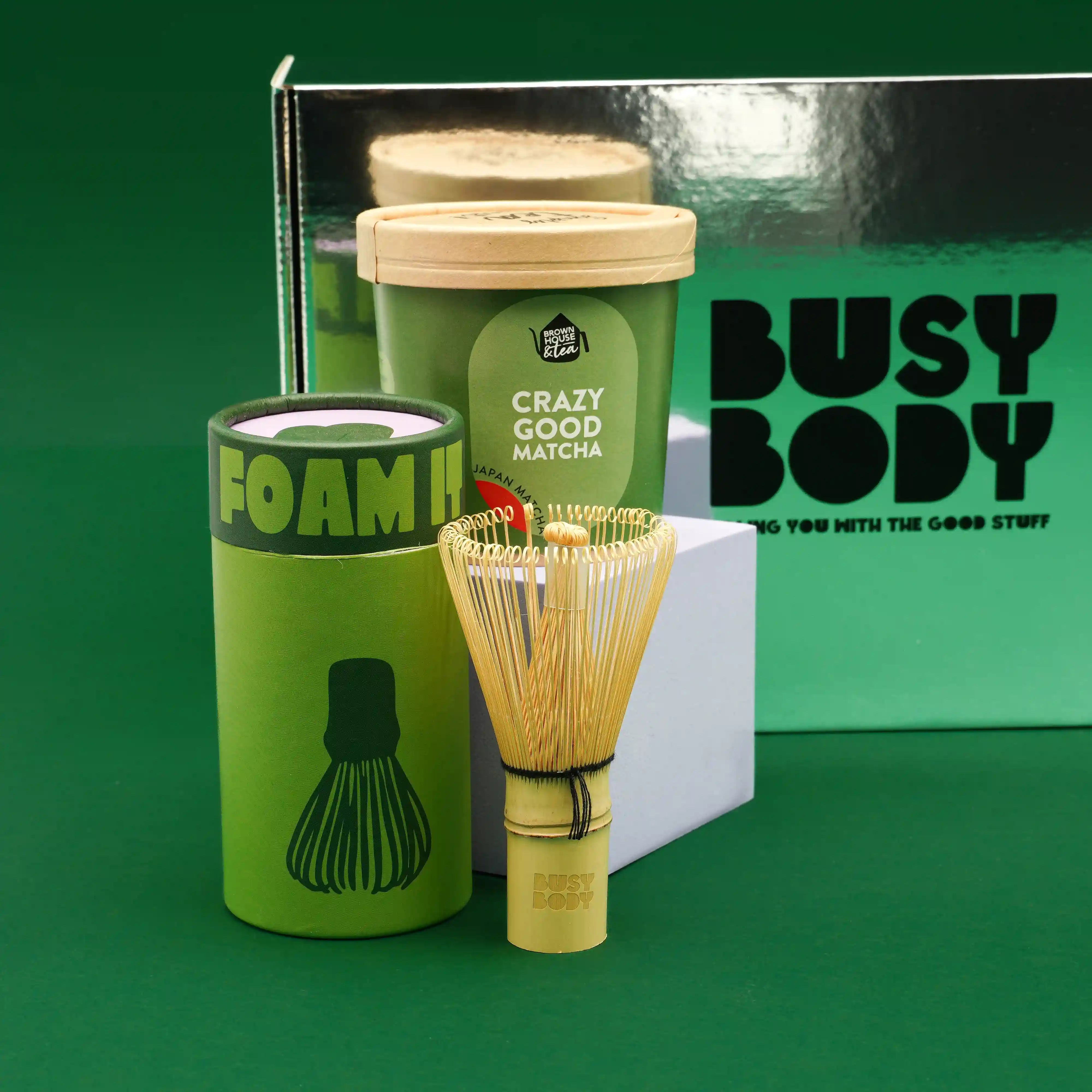 Bambukinė šluotelė, padedanti išgauti tobulą putą ir tolygų arbatos tirštumą. Originalioje Busy Body pakuotėje.