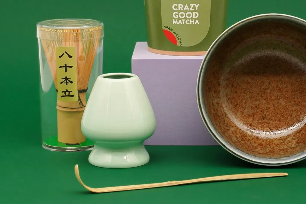 - Bambukinis šaukštelis (Chashaku) – tradicinis bambukinis šaukštelis, skirtas tinkamam matcha porcijų dozavimui.